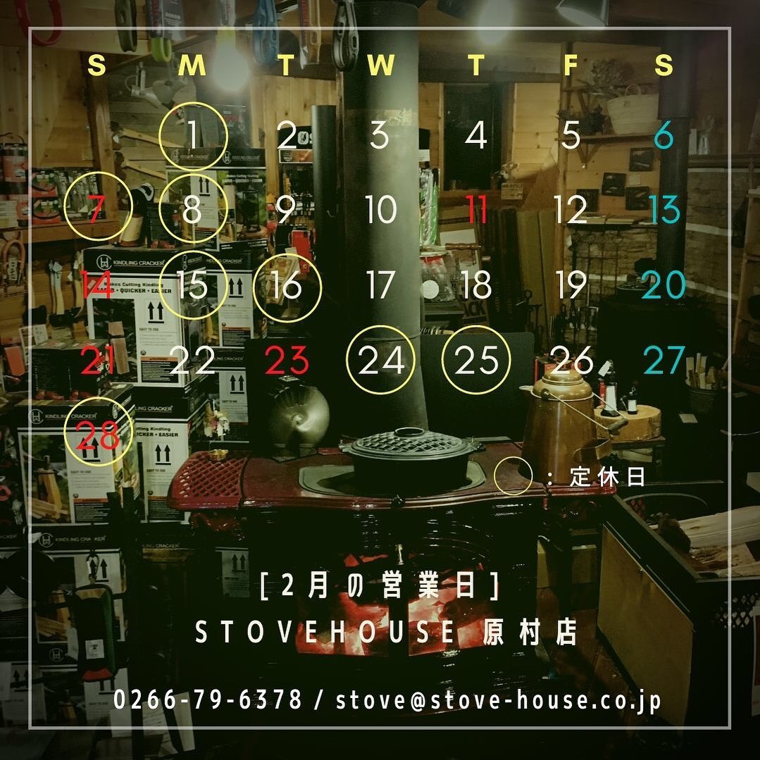 投稿日: 2021年2月2日2021年2月3日原村店・蓼科店 2月定休日のお知らせ※2月は祝日が11日と23日とございます。定休日がずれ込みますのでご確認のほどご来店よろしくお願いしますアップ遅くなりまして大変申し訳ございません。蓼科店は引き続き3月31日まで臨時休業となります。詳しくは、原村店(0266-79-6378)までお問い合わせください。#ストーブハウス #ストーブハウス原村#ストーブハウス蓼科#薪ストーブ#薪ストーブのある暮らし #薪ストーブ用品 #生活の道具 #キッチン #キャンプ#2月 #恵方巻き #定休日#お知らせ